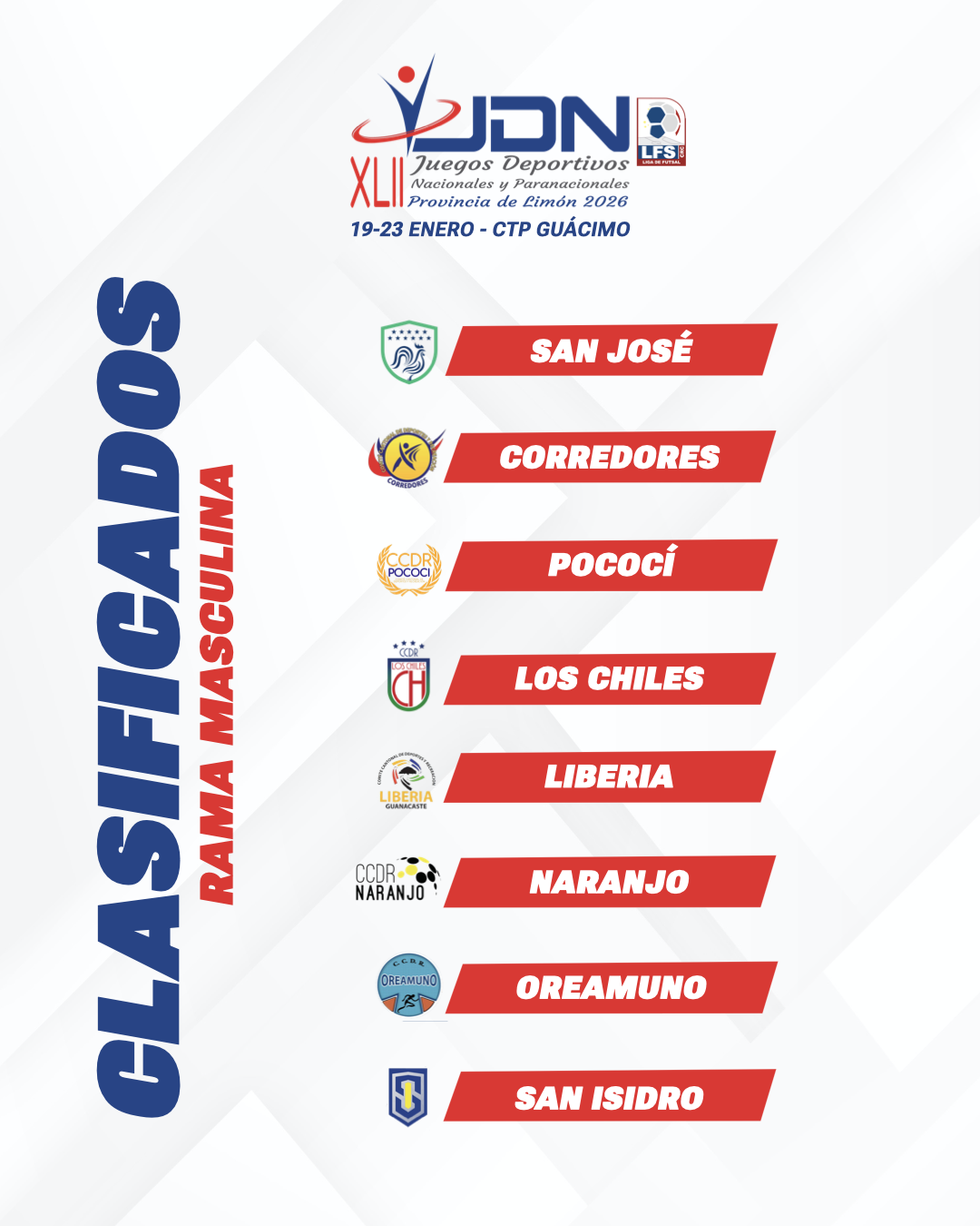Los heredianos se unen a San José, Corredores, Pococí, Los Chiles, Liberia, Naranjo y Oreamuno, los otros siete equipos que sellaron su clasificación para competir en el Gimnasio del CTP de Guácimo, del 19 al 23 de enero de 2026.